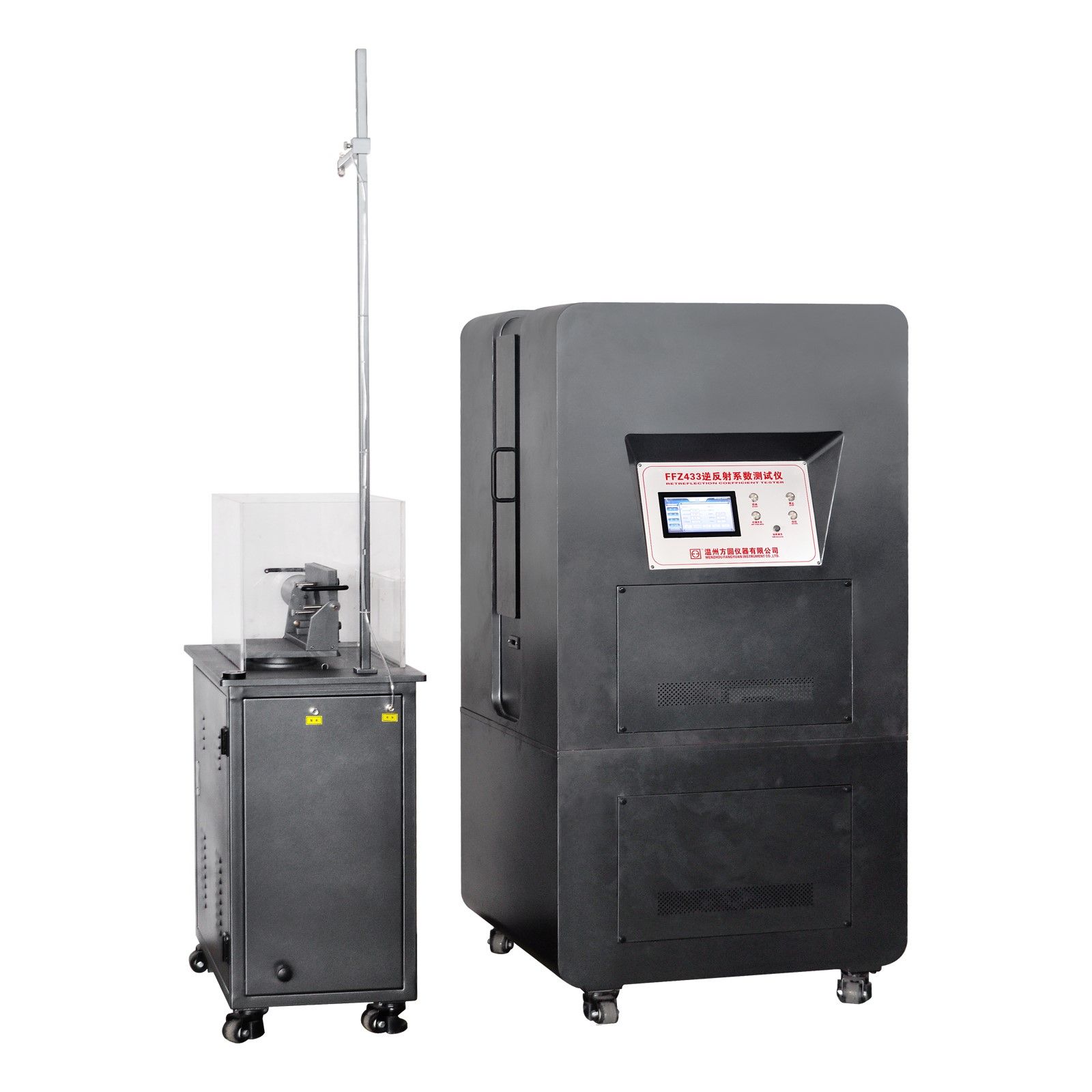 本公司自主研發(fā)FFZ433逆反射系數(shù)測試儀用于職業(yè)用高可視性警示材料、中小學(xué)生交通安全反光校服等材料在干狀態(tài)和淋雨濕狀態(tài)下反光性能的評定。